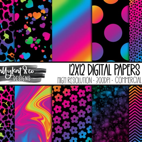 Retro Rainbow Pattern Digital Papers Hand Drawn Patterns Etsy